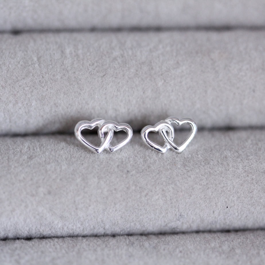 Pretty sterling twin heart studs measuring approx 6mm in size