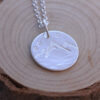 Sterling silver disc hand stamped with a pretty mountain and forest design.